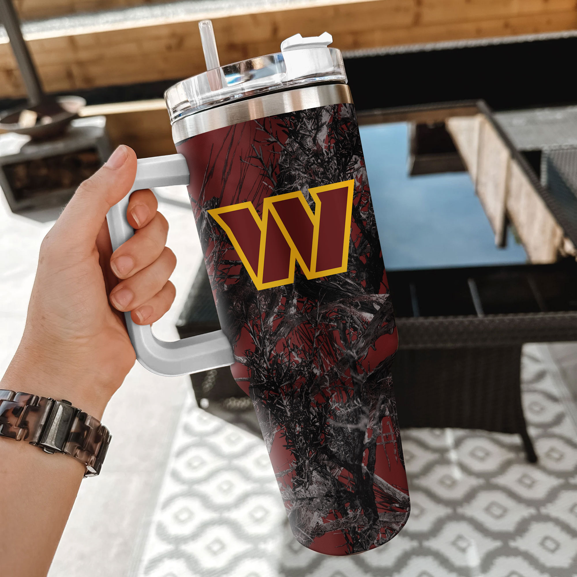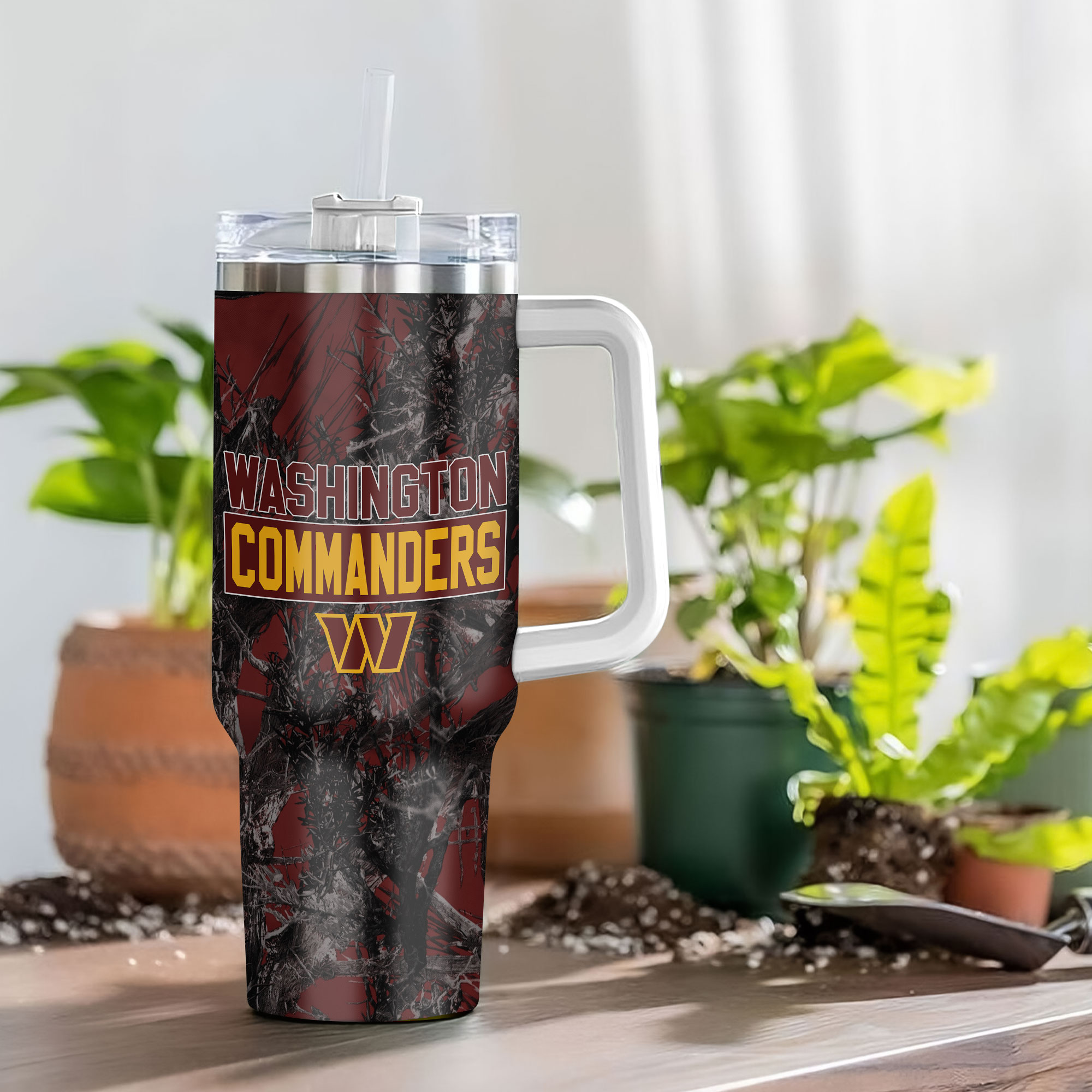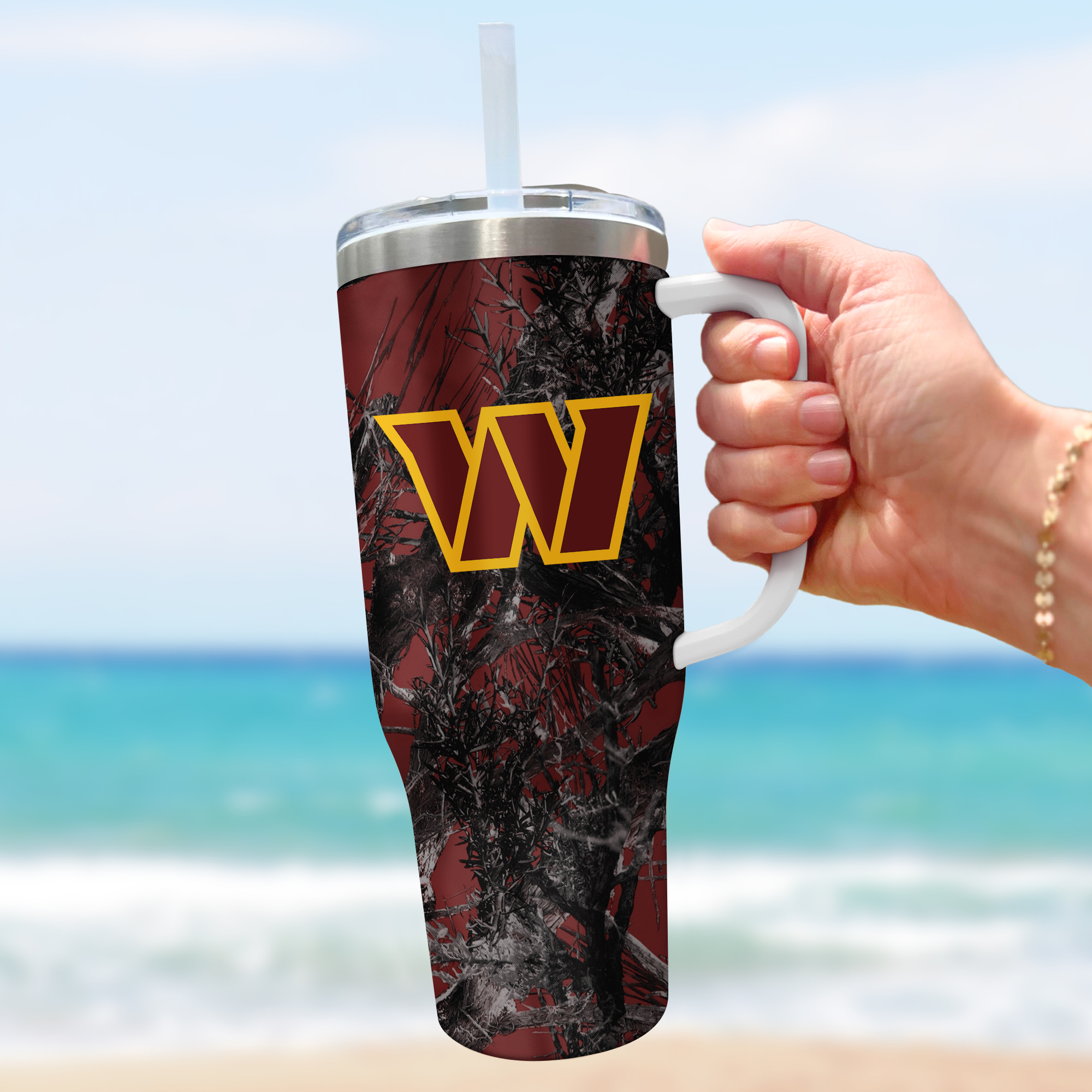 Stay refreshed and show your team spirit with this Washington Commanders insulated mug. Features a convenient handle and straw for easy sipping.